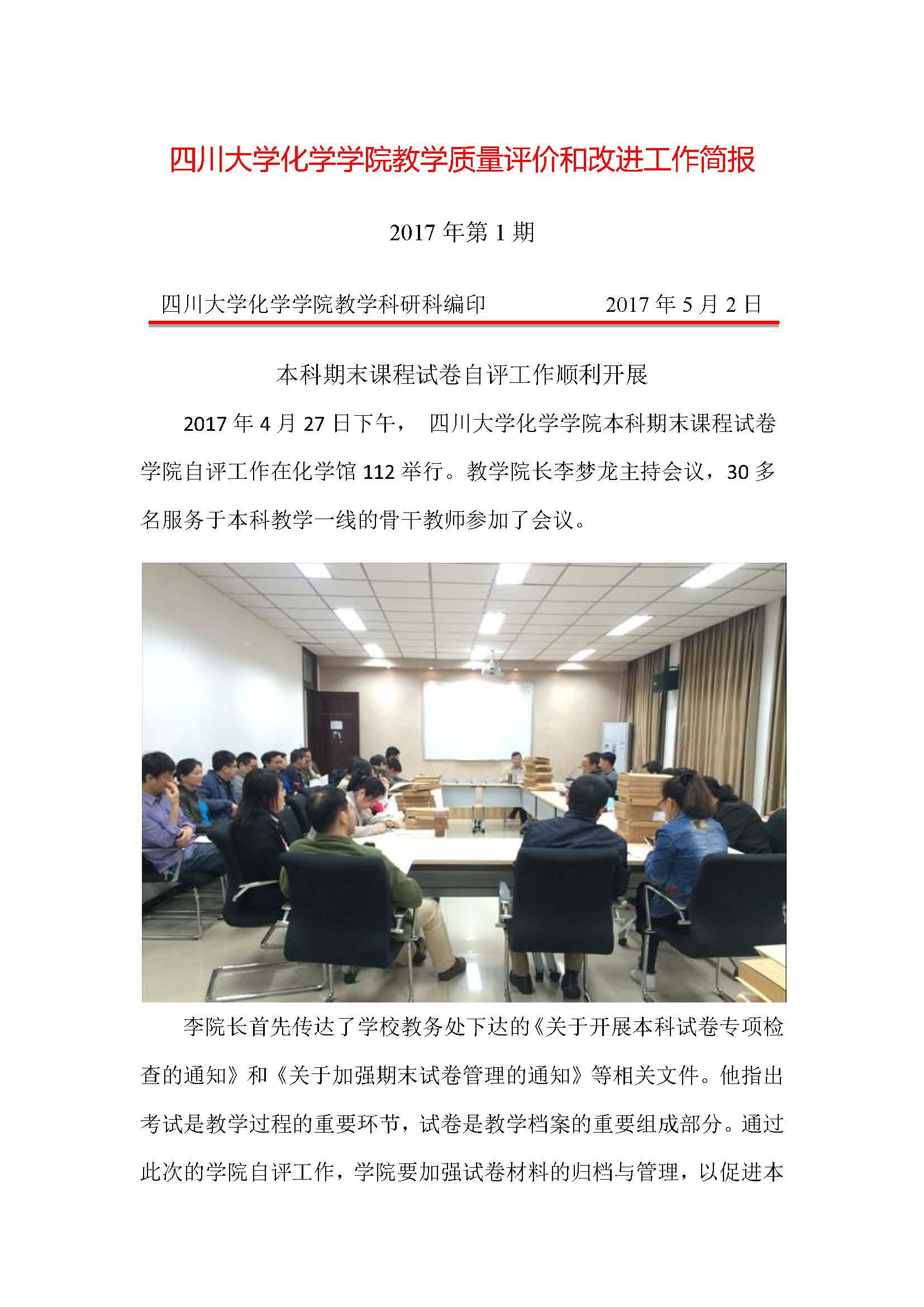 2017年四川大学化学学院开学教学检查简报-1