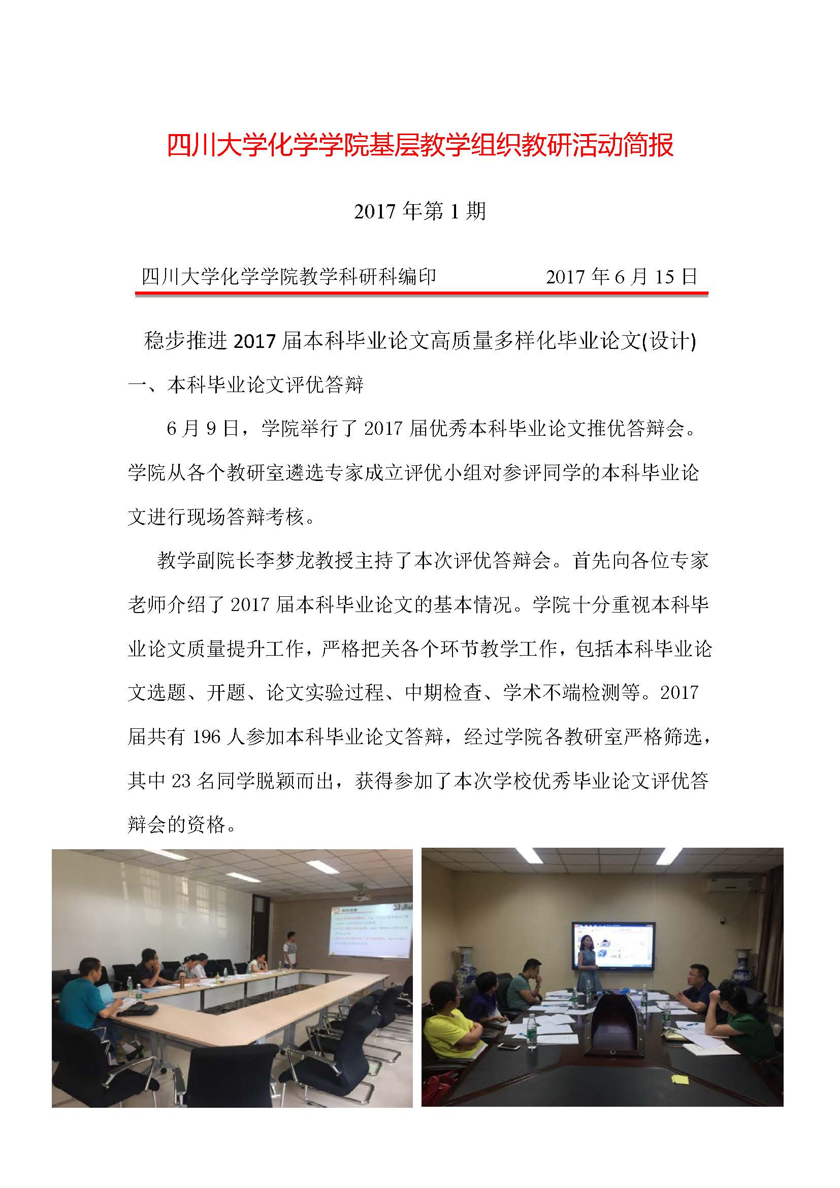 2017年四川大学化学学院教学督导工作简报1