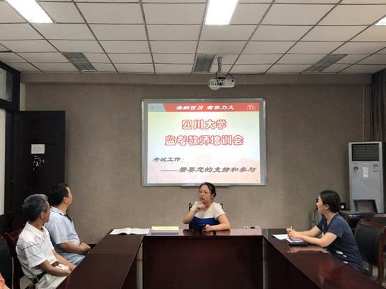 2018年6月28日下午在四川大学望江校区化学馆122举行了化学学院2017-2018学年春季学期期末考试监考和试卷归档培训。教学科研科科长姜林老师、主考、监考老师和教学管理人员参加了此次的培训。姜林老师向大家强调了监考工作的重要性,指出监考工作是考试管理工作的重要组成部分,也是保障教学质量的重要环节,严格监考行为对建设学院良好学风的有积极的推动作用。随后,教务办公室向各位老师详细介绍了监考流程和考试作弊处理的流程。特别强调了主考老师和监考老师必须严肃考纪,提前20分钟,佩戴监考证到岗,切实做好试卷收发和证件检查等工作,坚决杜绝教学事故的发生。此次监考工作帮助我院监考老师明确监考职责和流程,以确保期末考试公平公正的进行。