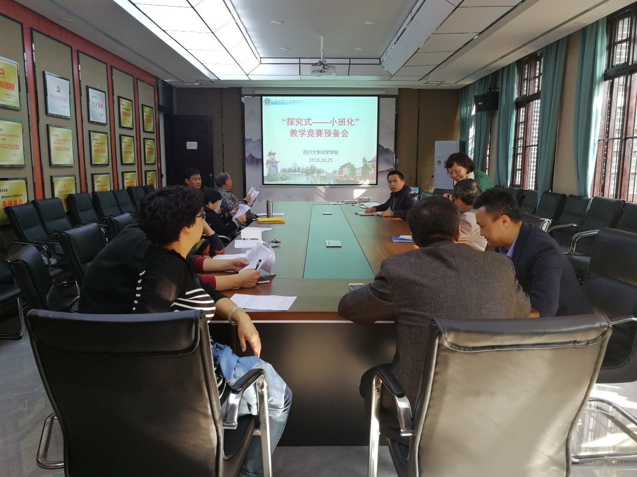 为扎实推进“以学为中心”的教学改革,化学学院开展了主题为“基于不同类型智慧教室的‘探究式-小班化’教学创新”的教学竞赛。整个教学竞赛前后历时1个多月,围绕教学立德树人的根本任务,把思想政治工作贯穿教育教学全过程,实施全程方位,全方位育人。11月30日下午,学院教学竞赛决赛现场授课在望江基础教学楼A408正式拉开序幕,郑成斌副院长首先介绍了此次教学竞赛的基本情况,对教学竞赛的评选机制进行了详细的介绍,袁立华教授、钟安永教授、肖友发副教授、薛英教授、李瑞祥教授担任现场授课环节评委,同时15位同学担任学生评委。学院有多位老师自愿前来观摩交流。