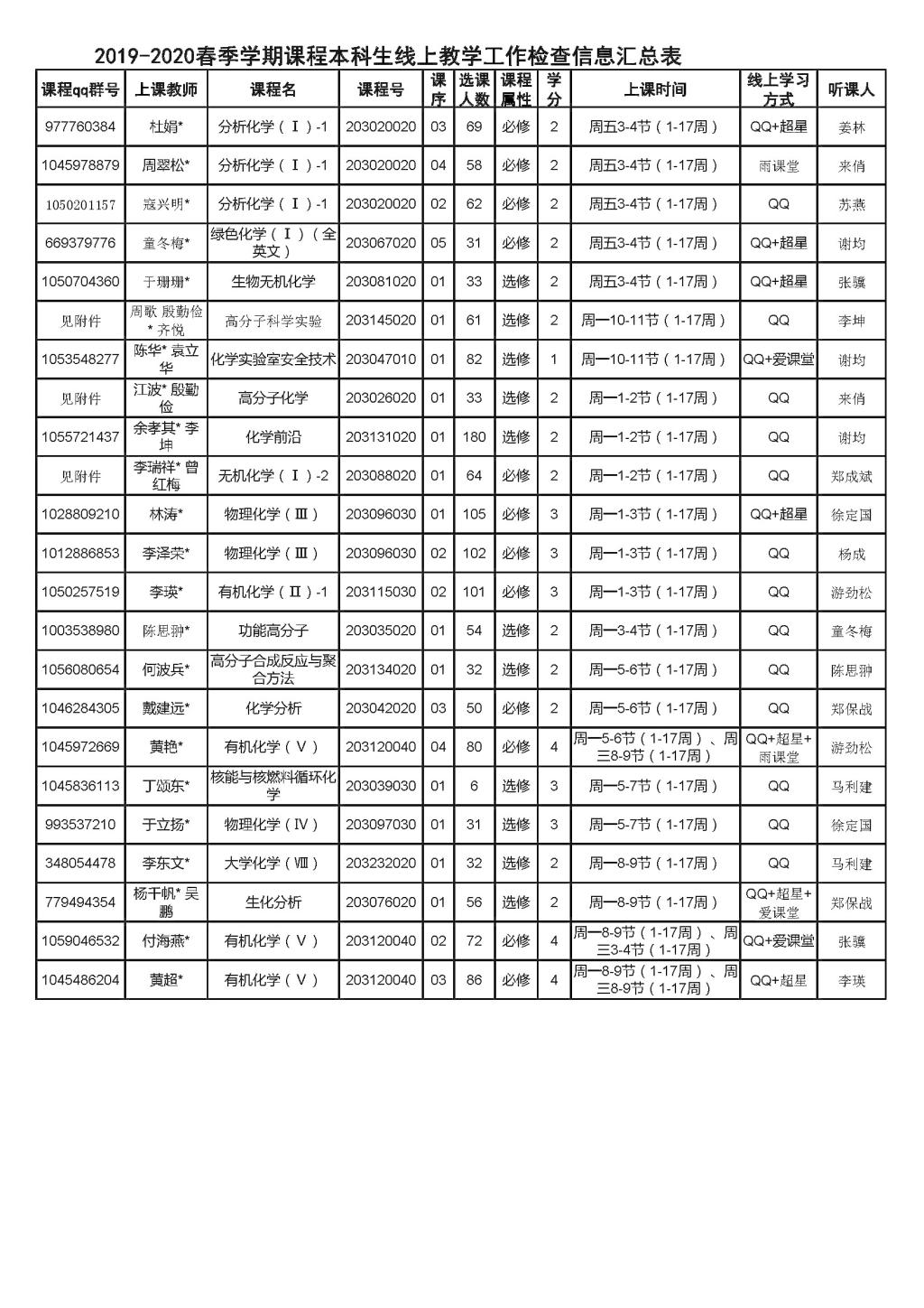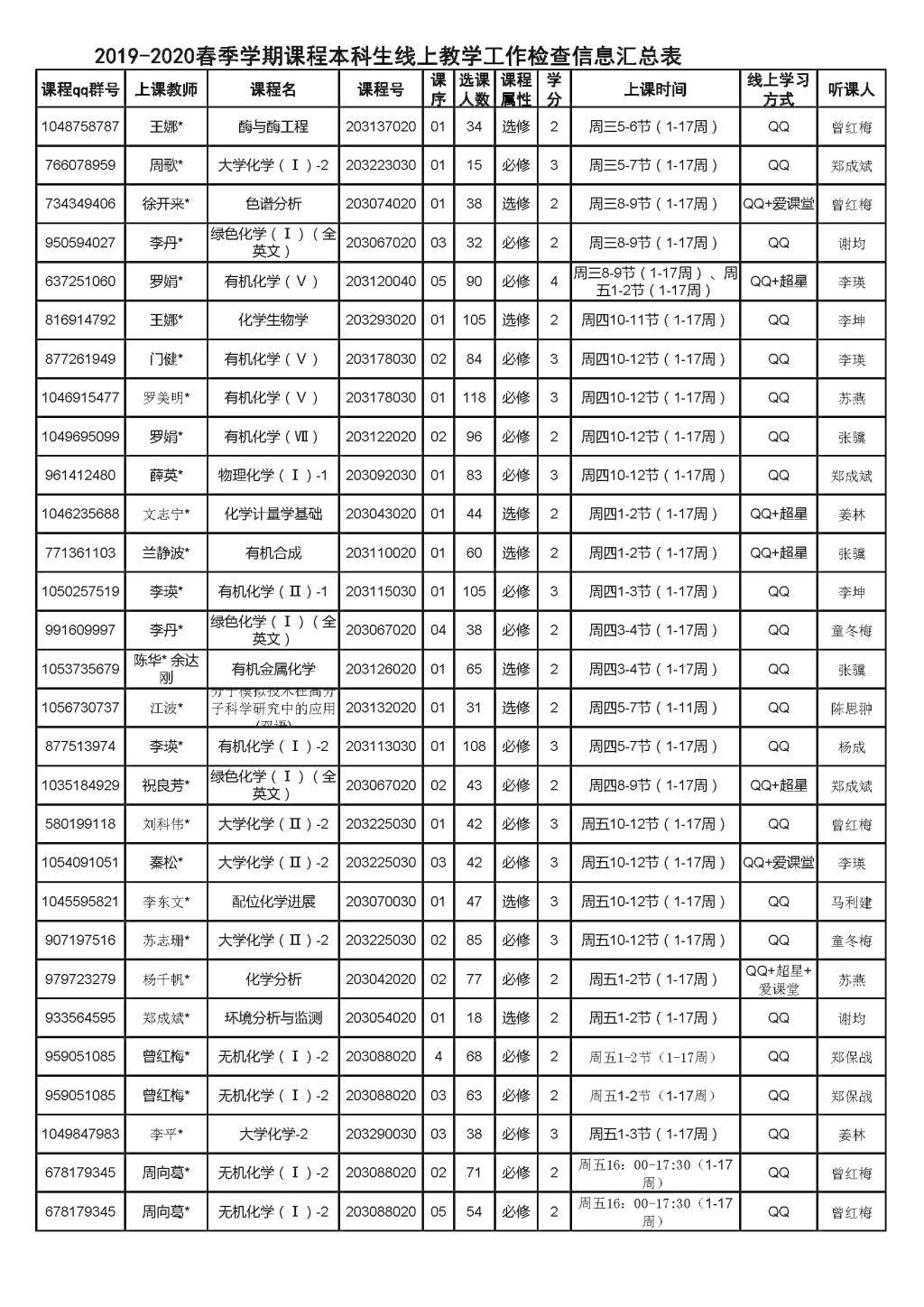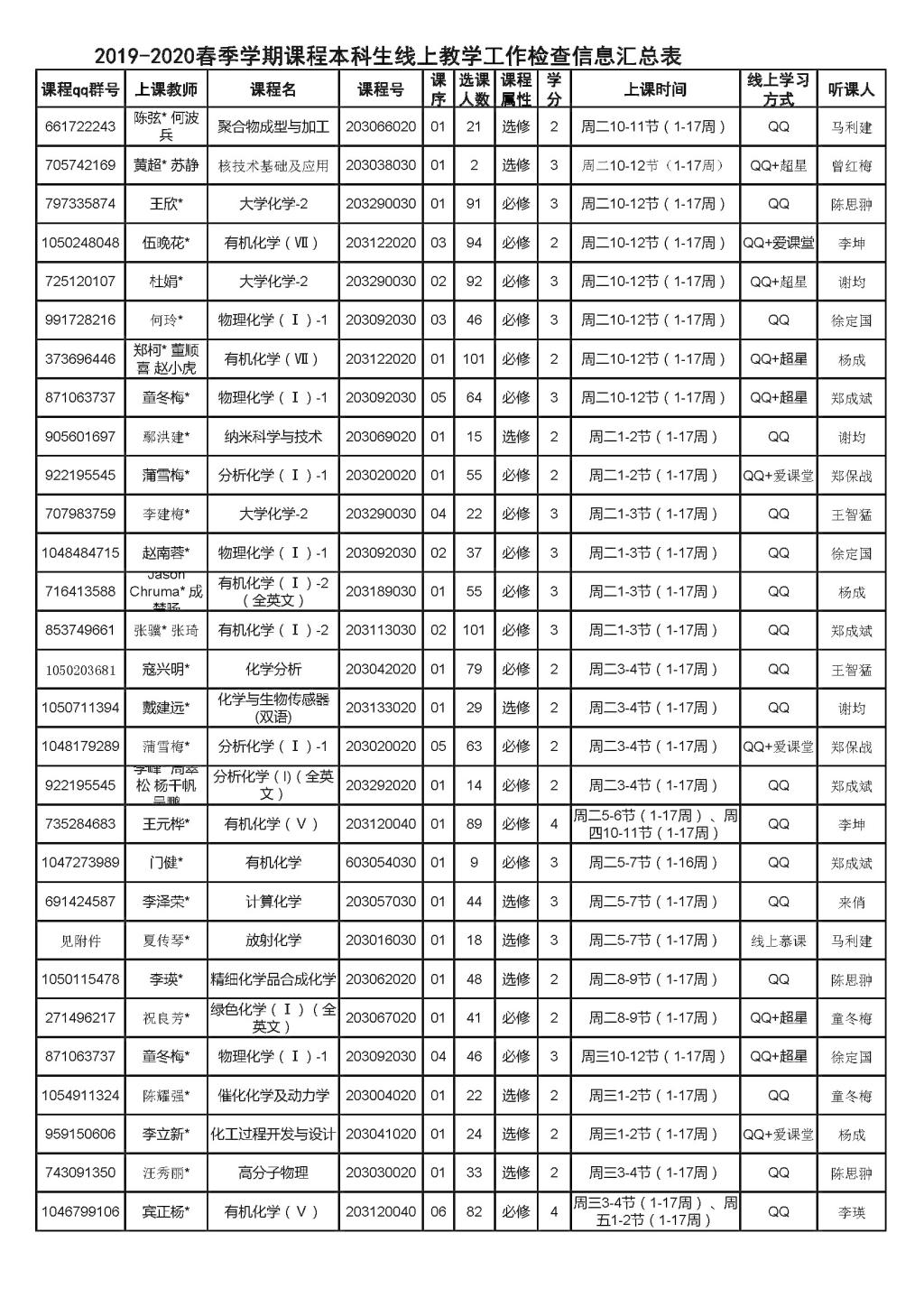 线上开课第一周(2月24日-28日)学院共有81门次课程上线,所有课程平稳运转、秩序竟然。为了减少对上课师生的影响,学院采取“以听代查”的方式,学院书记、院长等班子成员、各教研室主任、教务口、学工口老师积极参与线上课程听课,确保所有课程听课全覆盖(后附听课安排表)。收到有效在线反馈信息:听课意见39门次,查课意见30门次。