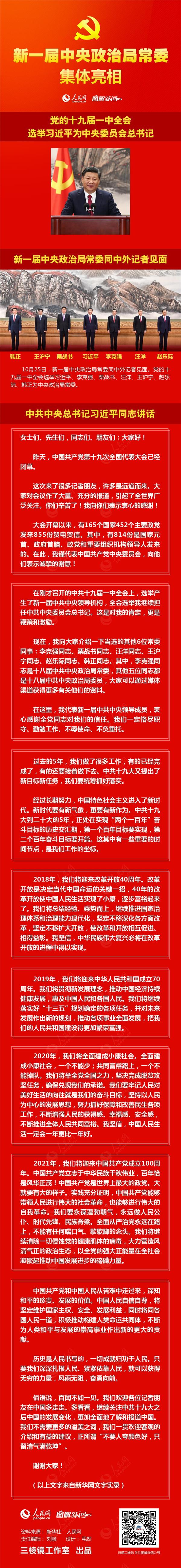 图解:新一届中央政治局常委集体亮相
