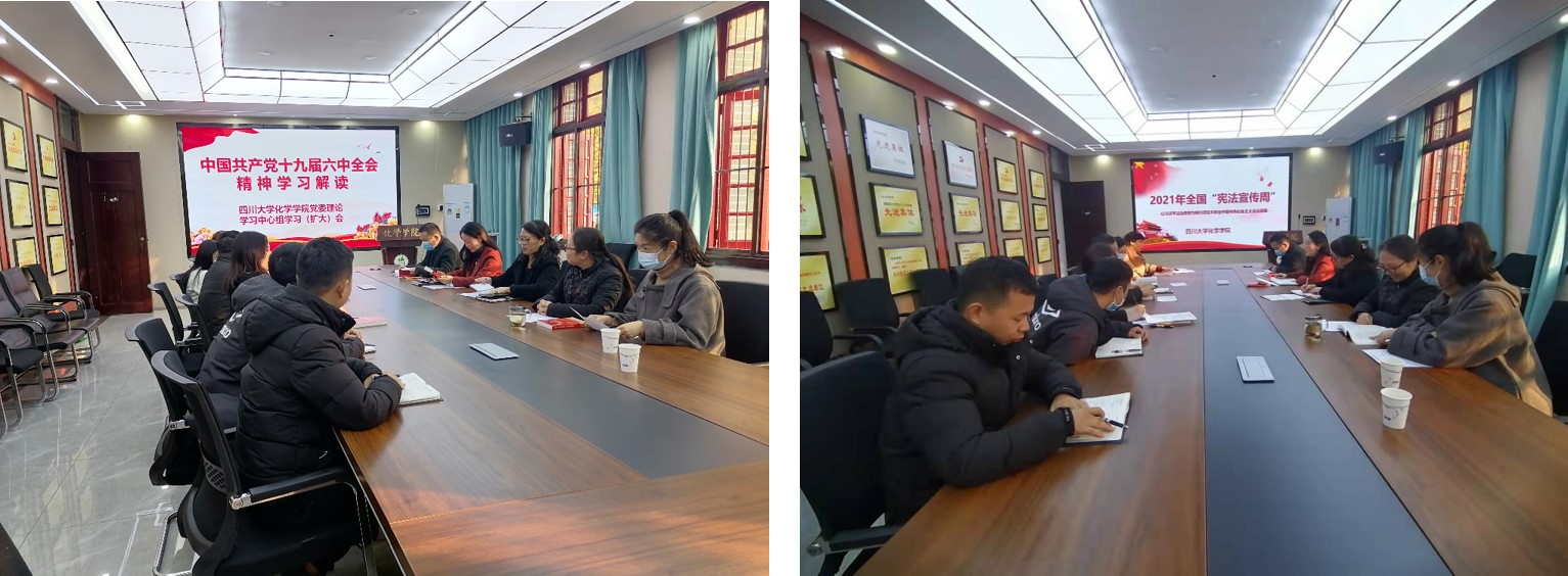 2021年12月2日,在化学馆122会议室召开化学学院党委理论学习中心组学习(扩大)会议,认真学习贯彻党的十九届六中全会精神。