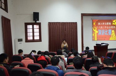 演讲比赛中,同学们表达了自己对十八届三中全会成功召开的喜悦,谈了自己对全会精神的理解,并表达了对祖国美好明天的期望;此外王明齐(博)、胡晨旭(硕)、邓杰(本科)等31名党员同学获得“四川大学化学学院十八届三中全会知识竞赛”优秀奖,学院为他们颁发了奖状。与此同时,化学学院也积极组织各年级同学参加学生工作部举行的“我与社会发展”征文比赛并投稿5篇,参加同学都从自身的角度出发,谈到了自己所见的改革开放35年中的社会发展。学院还邀请到四川大学“学习贯彻党的十八届三中全会精神宣讲团”的张诚教授于12月27日下午在望江校区化学馆一楼报告厅为化学学院教职工及学生党员进行题为《认真学习贯彻全会精神,加快建设一流大学步伐》的讲座,届时张诚教授的精彩宣讲定会让广大化学学院的教职工党员对十八届三中全会精神有全新的理解!
