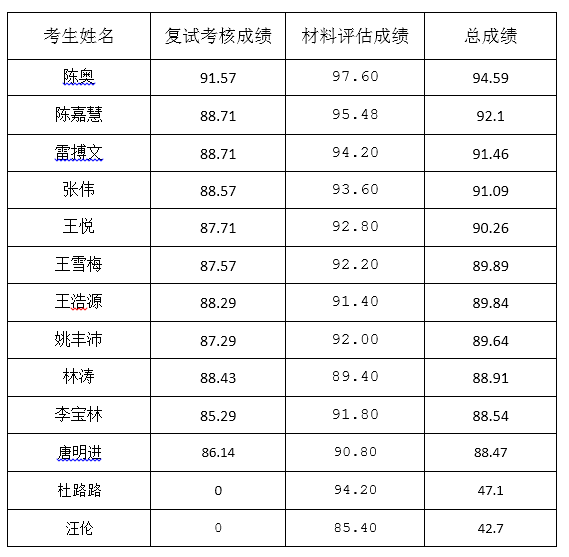 四川大学化学学院2019年“申请考核制”博士复试成绩公示:
