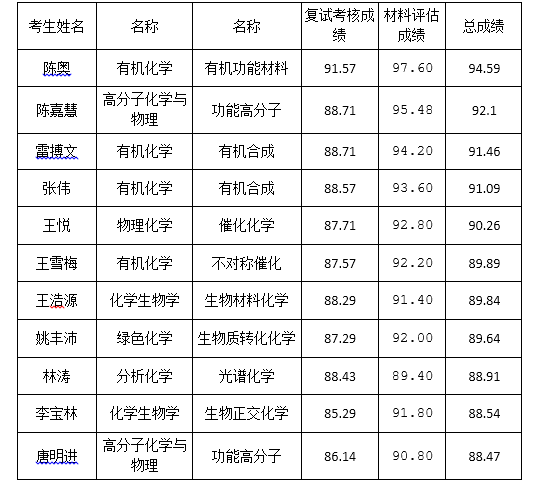 四川大学化学学院2019年“申请考核制”博士拟录取名单公示:
