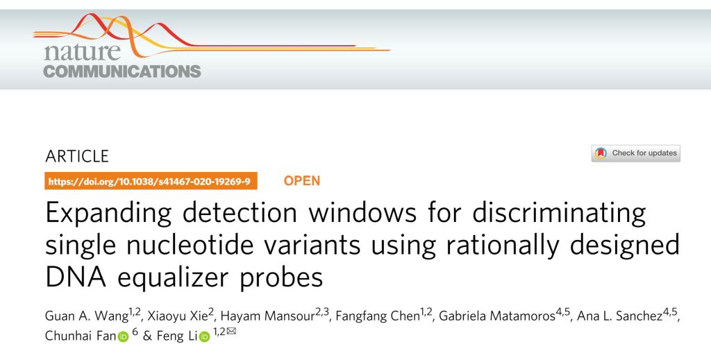 近日,我校化学学院的李峰教授团队,在国际前沿期刊《Nature Communications》上发表了题为“Expanding detection windows for discriminating single nucleotide variants using rationally designed DNA equalizer probes”的论文。四川大学为第一通讯单位,四川大学-加拿大布鲁克大学联合培养博士研究生王冠为该论文的第一作者,李峰教授为唯一通讯作者。