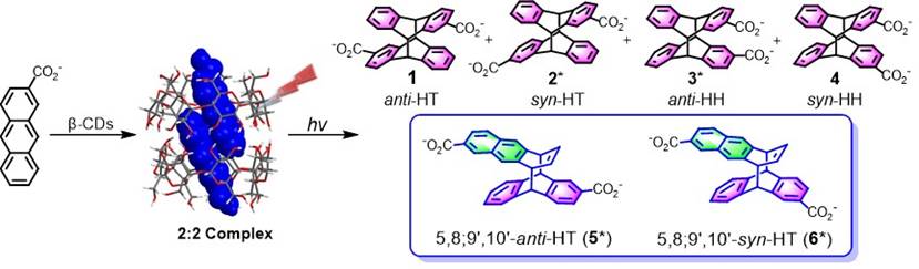 处于电子激发态的有机分子具有寿命短、相互作用弱和活性高的特点,给不对称光化学的手性控制带来了巨大的挑战。超分子手性光化学是近年发展起来的利用超分子主客体作用来控制和提高不对称光化学反应选择性的便捷且极具前景的新策略。该论文以β-环糊精衍生物介导的2-蒽甲酸的不对称光二聚反应为例,系统阐述了超分子手性光化学反应这一新策略。详细介绍了超分子主体的设计合成,主客体包结行为研究,光化学反应操作流程以及产物的分布和对映体选择性分析等的设计原理和研究方案。这一研究方案的建立为超分子体系中的手性光化学反应研究提供了详实而生动的指导。
