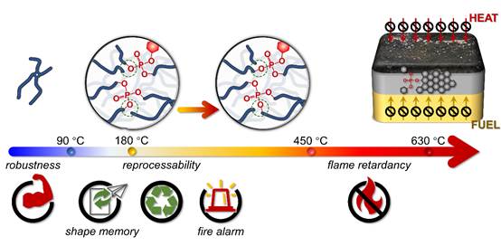 共价自适应性网络(CANs)能够在特定的外界刺激下发生化学键的可逆断裂和重构,这一特性为热固性树脂的回收和再加工提供了可能。同时,CANs能够赋予这类热固性高分子材料一些新的功能特性,如可焊接、自修复及刺激响应行为。然而,相比于永久交联的热固性高分子材料,CANs聚合物常面临机械性能、热稳定性等使用性能与动态交换活性难以平衡等问题,限制了其在高性能领域的应用。此外,不管是永久交联的化学网络,还是共价自适应性网络,以环氧树脂为代表的高分子材料易燃,燃烧时烟毒释放量大,存在不可忽视的火灾安全隐患。因此,如何提升具有CANs的环氧树脂的使用性能,同时维持其优异的动态响应特性,增强火安全性能,是亟待解决的一大难题。