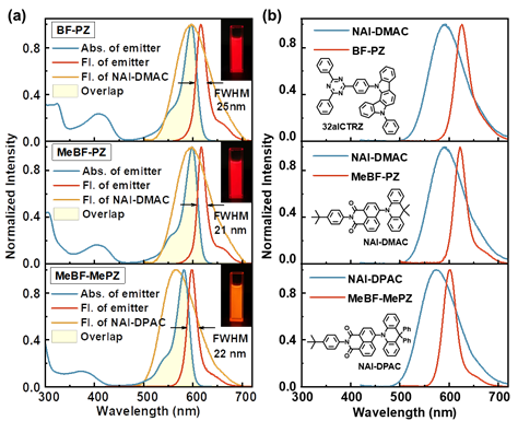 近年来,随着超高清柔性显示设备的需求不断增加,对于窄光谱有机发光材料和其相关器件OLED的研究备受关注。然而,相比于蓝光和绿光窄光谱发光材料的发展来说,红光窄光谱发光材料在能隙定律和合成上的挑战下,发展速度较慢。