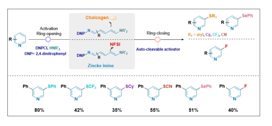 吡啶及其衍生物在药物、农用化学品、生物活性分子中有着广泛应用。在吡啶的功能化研究中,邻位和对位的官能化相对丰富,但其间位的官能化仍是颇具挑战性的目标。传统方法通常需要过渡金属催化,反应条件苛刻,底物范围受限,限制了其在药物研发中的应用。