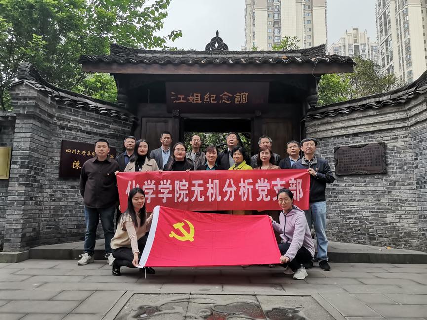 为庆祝中国共产党成立100周年,缅怀革命先烈,进一步强化党史学习教育成果,做到学史明理、学史增信、学史崇德、学史力行,化学学院无机分析党支部于2021年4月9日在四川大学望江校区江姐纪念馆开展庆祝建党100周年重温入党誓词主题活动,支部全体党员参加了此次活动。