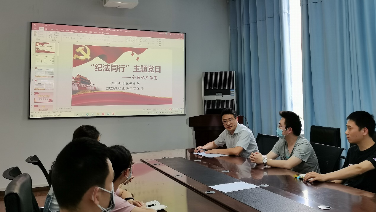 为认真贯彻落实中央纪委、四川省纪委、教育系统和四川大学全面从严治党工作会议精神,深入推进支部党风廉政建设向纵深发展, 4月29日下午,学院党委副书记兼纪委书记肖波在理科楼231会议室,与2020级硕士第二党支部开展了“纪法同行”主题党日活动。