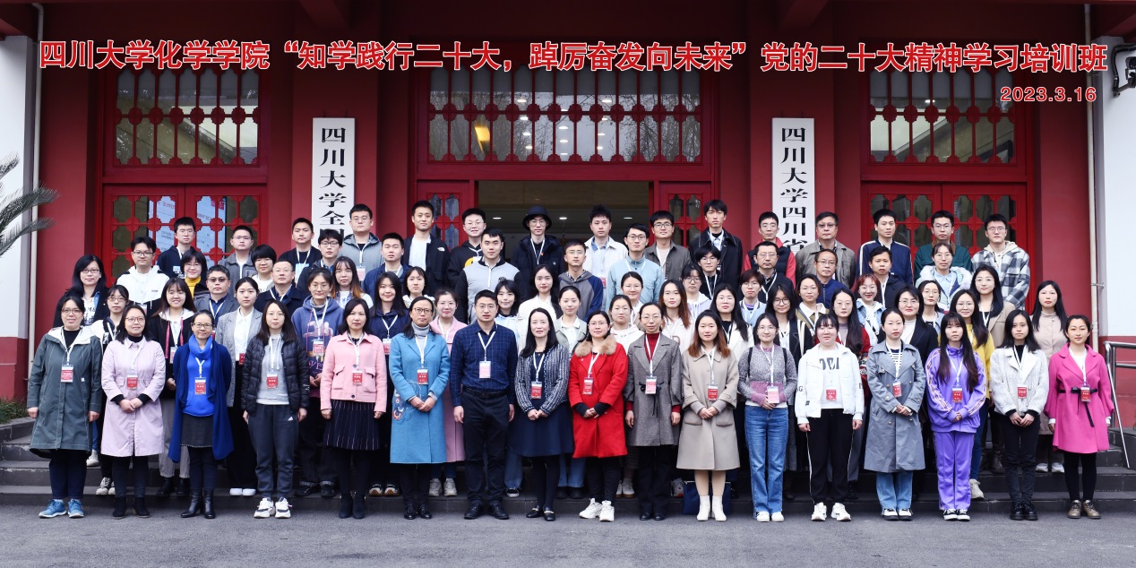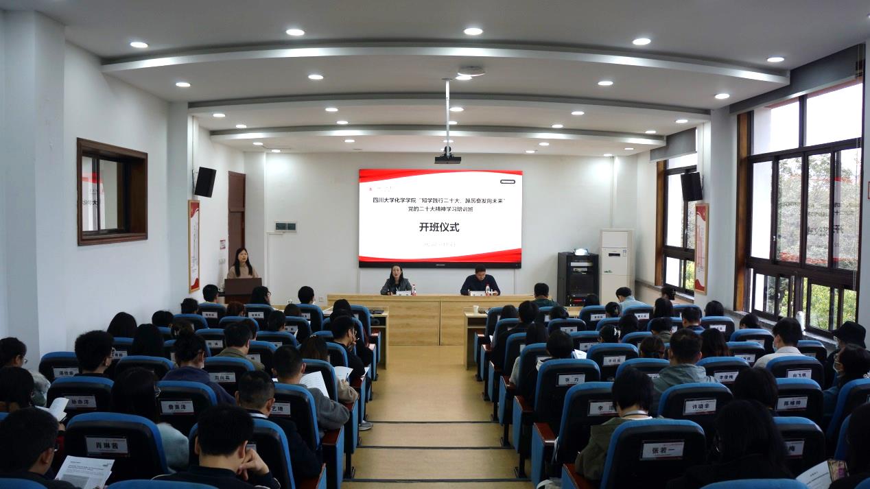 为深入学习贯彻党的二十大精神,3月16日—17日,四川大学化学学院“知学践行二十大,踔厉奋发向未来”党的二十大精神学习培训班,在四川大学全国干部教育培训基地成功举办。参加此次培训的学员有:学院党政领导,党委委员,纪委委员,统战委员,教研室主任,党支部书记、支委,优秀教师代表、学生代表等。开班仪式由谢均书记、肖波副书记组织并致辞。