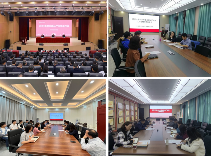 2024年3月18日,学校召开2024年全面从严治党工作会,强调做好学校全面从严治党工作。会后,化学学院高度重视,召开党委会、党政联席会、支部书记会等,传达学习《四川大学2024年全面从严治党工作要点及分工》,对学院全面从严治党相关工作进行部署安排并要求认真贯彻落实。