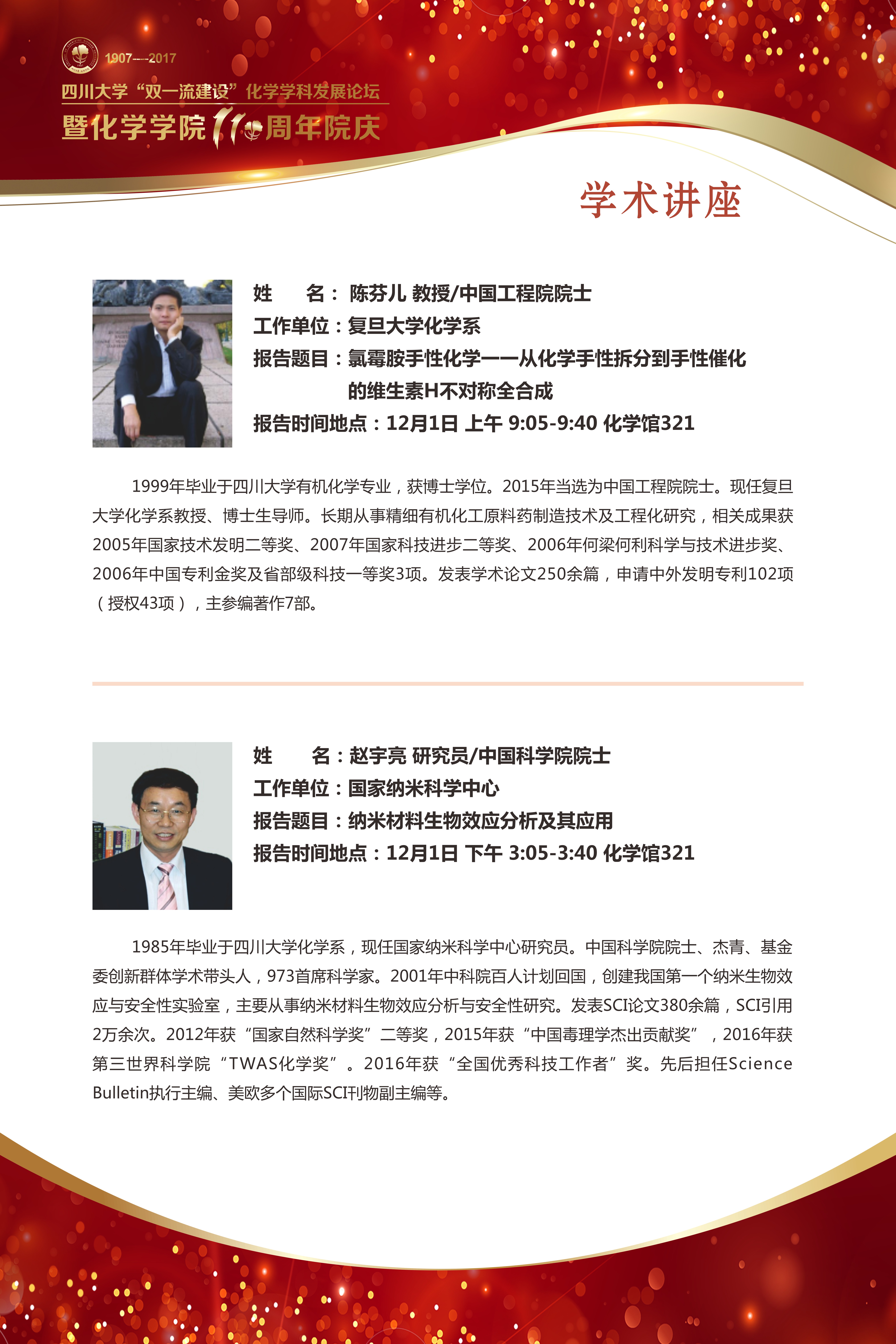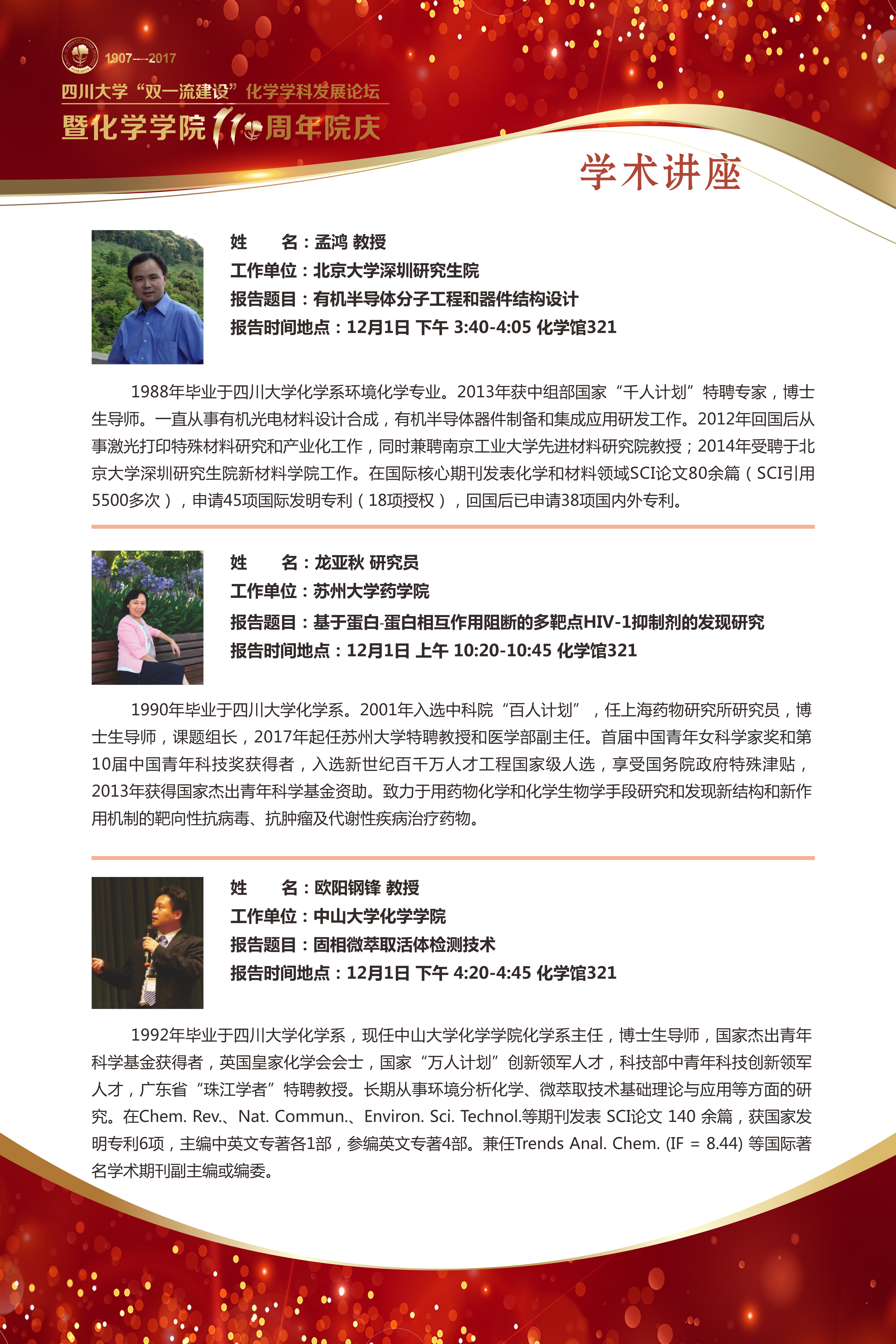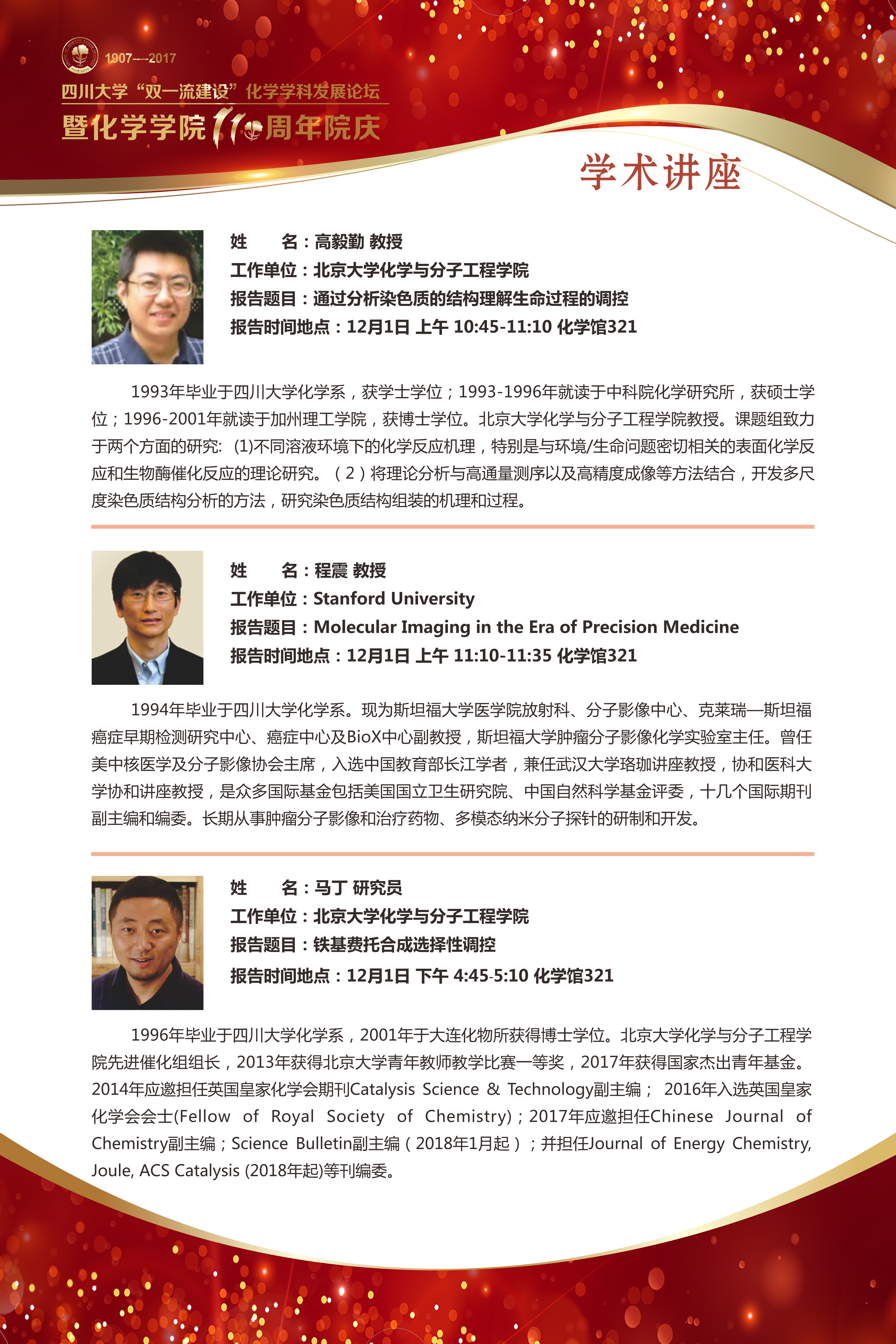 四川大学“双一流建设”化学学科发展论坛暨化学学院110周年院庆公告[2017/11/24]