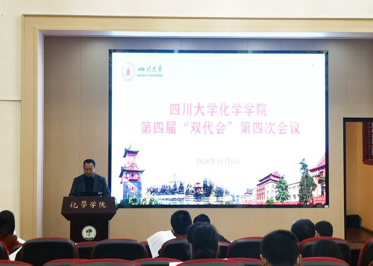 2020年11月6日,四川大学化学学院第四届教职工代表大会暨工会代表大会第四次会议在化学馆321报告厅隆重召开。学院领导班子及57名双代会代表出席本次会议,大会由党委书记谢均同志主持。本次大会的主题是:求实创新,奋力拼搏,推动学院稳步前进。