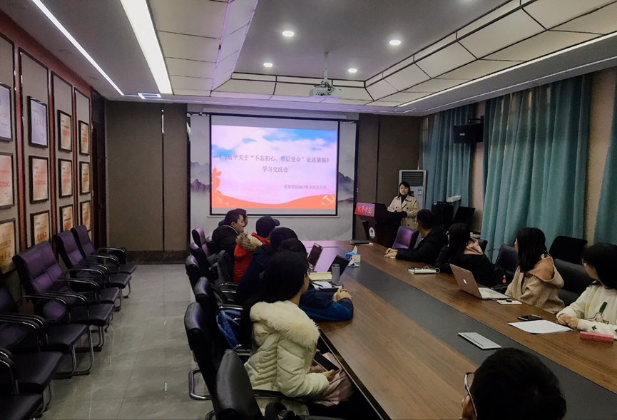 为深入贯彻落实党中央“不忘初心 牢记使命”主题教育,学习宣传贯彻党的十九届四中全会精神,按照学院主题教育活动安排,化学学院2017级本科党支部组织于12月3号下午在化学馆122开展了《习近平关于“不忘初心、牢记使命”论述摘编》学习交流会和学习党的十九届四中全会精神教育活动。