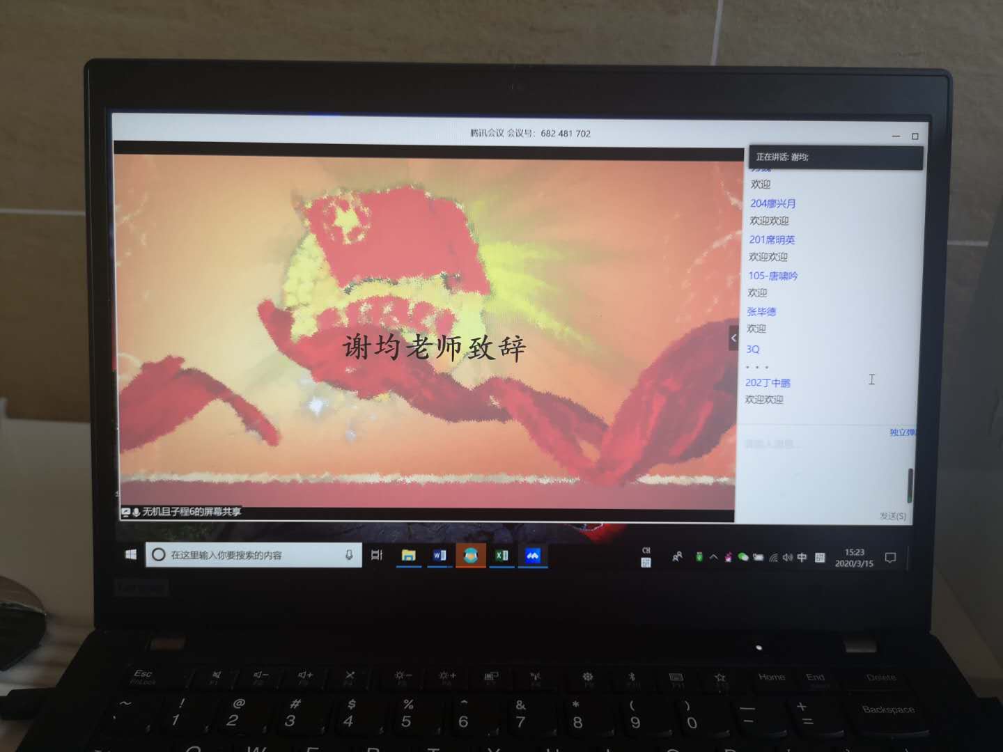 2020年3月15日,化学学院党委副书记谢均老师通过腾讯会议平台以“打赢抗疫攻坚战,书写青春正能量”为主题,为2019级本科学生上了一堂生动的线上思政专题课。