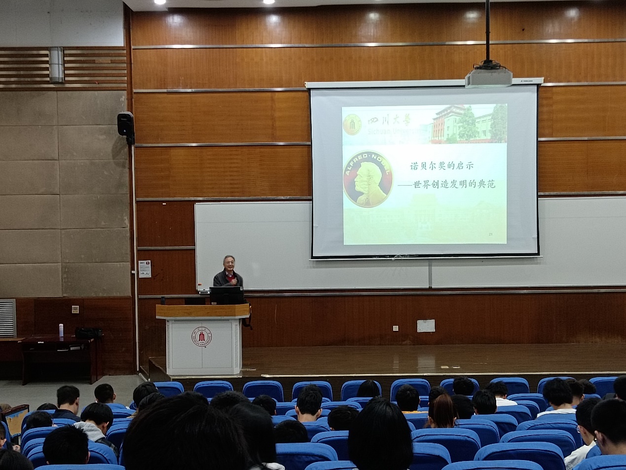 为了提升学生的创新思维能力,激发创新热情。10月13日晚上,化学学院国家教学名师奖获得者、绿色化学与技术教育部重点实验室主任胡常伟教授为学院2023级全体本科生带来了“创新思维与交流”系列讲座第二讲:诺贝尔奖的启示—世界创造发明的典范。