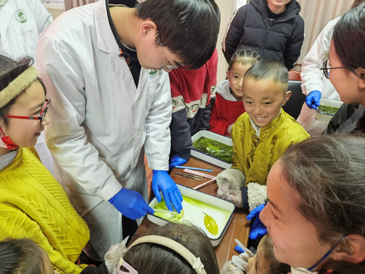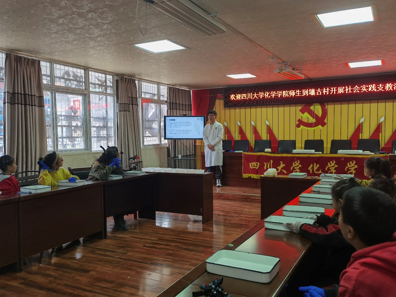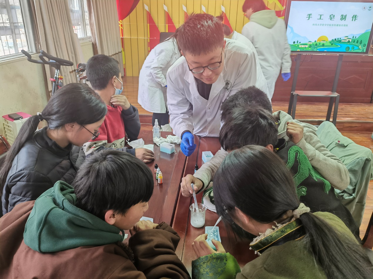 在党的二十大精神指引下,为进一步传播科学知识,四川大学化学学院“走进乡土深处,探索共富新路”青年观察先锋队于2024年1月19-22日重返大山开展寒假社会实践活动。化学学院团委副书记张若一、本科生辅导员浩涛涛带领团队成员前往阿坝州壤塘县壤古村,辅导学生课程作业,开展化学科普讲解及知识问答竞赛,指导青少年亲手制作叶脉书签和特色手工皂,发挥化学专业特长助力乡村振兴。