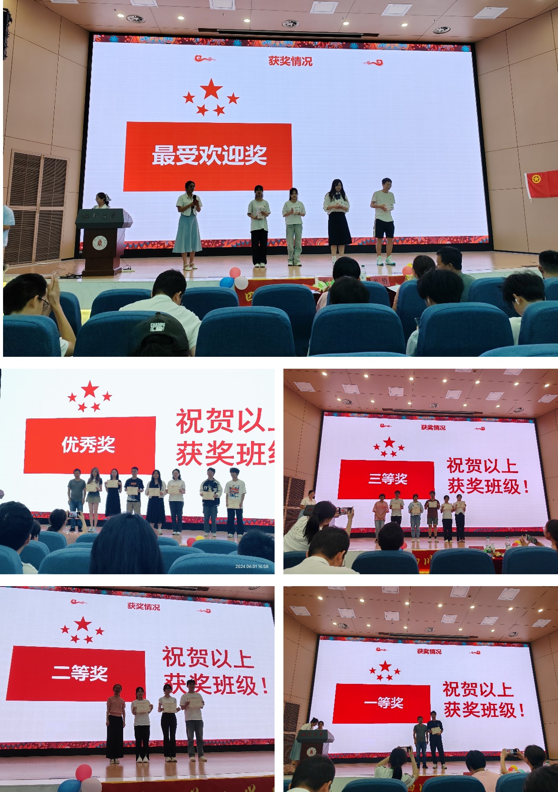 最后来俏老师进行活动总结,表扬了各团支部认真准备本次团支部风采大赛,强调了团支部风采大赛在团支部建设的重要性,希望各团支部的建设越来越好。经过激烈在角逐,在欢快的氛围中进行了颁奖环节,获得最受欢迎奖的团支部是101班、202班、301班、205班。获得优秀奖的团支部是104班、103班、501班、302班、106班、102班、203班。获得三等奖的团支部是201班、401班、301班、105班、206班。获得二等奖的团支部是202班、204班、205班。获得一等奖的团支部是101班。