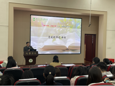 2025年3月7日下午,四川大学化学学院“携手得荣,共筑未来”一对一伴读活动(第二期)总结大会在化学馆321报告厅举行,出席本次会议的人员有四川大学化学学院党委副书记肖波老师,四川大学全国干部教育培训基地培训三部主管杨君老师,伴读活动全体小导师以及化学学院2021级本科学生党支部的全体成员。会议由2021级本科学生党支部书记张美成老师主持。