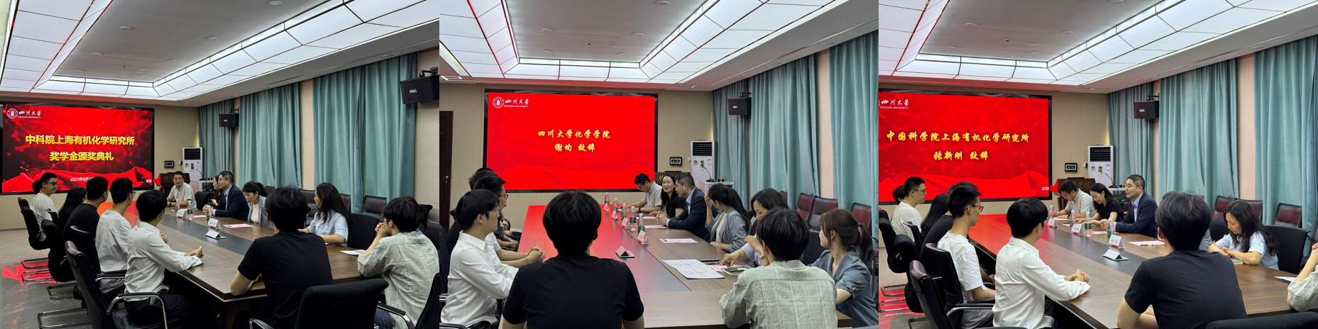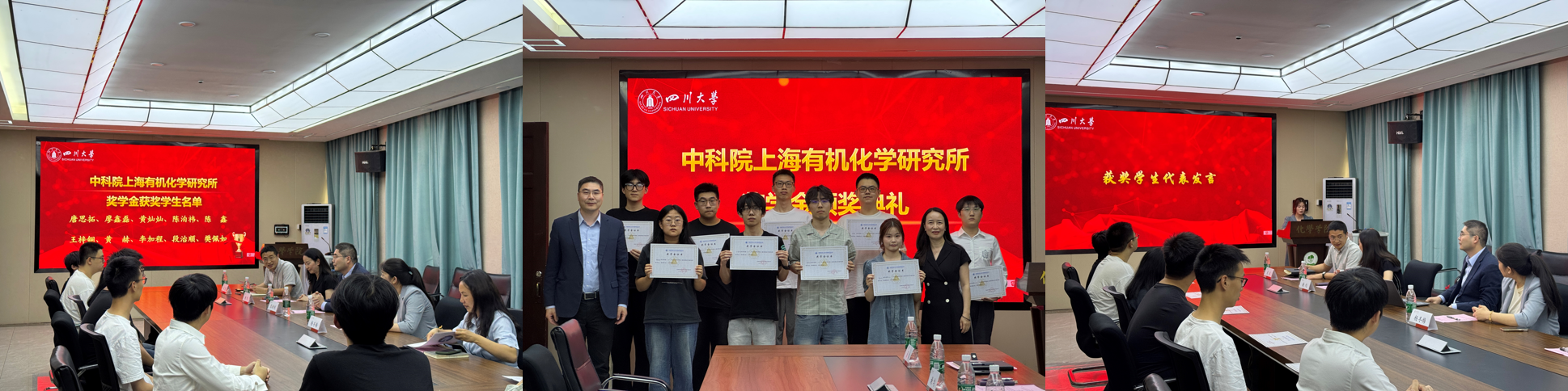 谢均书记代表学院对张新刚研究员和杨冬梅老师的到来表示热烈欢迎,对中科院上海有机化学研究所长期以来对化学学院人才培养工作的大力支持表示衷心感谢。谢书记指出,自该奖学金设立以来,鼓励着化学学院的同学们在科研创新、学术发展等方面取得了优异成绩,奖学金的设立不仅是对优秀学子的物质奖励,更是对全院师生的精神激励。谢书记强调,四川大学化学学院将进一步加强与中科院上海有机所的深度合作,共同探索“科教融合、协同育人”的创新人才培养模式,在科学研究和人才培养等方面不断深化合作、协同创新,为学生提供更广阔的发展平台。同时对获奖的同学们表示祝贺和美好祝愿,希望获奖同学珍惜荣誉,再接再厉,在化学研究领域勇攀高峰。