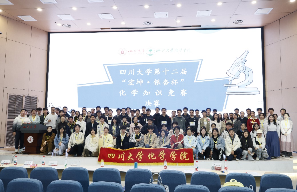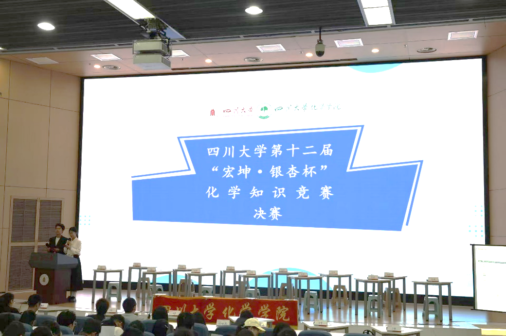 2025年11月2日上午,由宏坤集团赞助,“挑战杯”学生科技节组委会支持、四川大学化学学院承办的四川大学第十二届“宏坤·银杏杯”化学知识竞赛决赛在四川大学江安校区水上报告厅成功举办,四川大学化学学院党委副书记肖波老师、教导员王毅老师、化学学院全体辅导员老师作为嘉宾出席本次决赛。