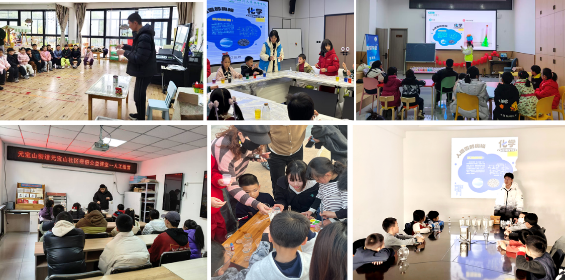 为深入学习贯彻习近平总书记关于青年工作的重要思想,引导广大青年学生在社会实践中厚植家国情怀、了解国情民情、增长知识才干,四川大学化学学院坚持将专业教育与社会服务深度融合,鼓励青年学子,利用寒假期间积极开展社会实践,发挥学科专业优势,回到当地开展“妙趣化学·冬日奇境”趣味化学实验活动,引领同学们在服务基层、奉献社会的生动实践中上好与专业相结合的“大思政课”。