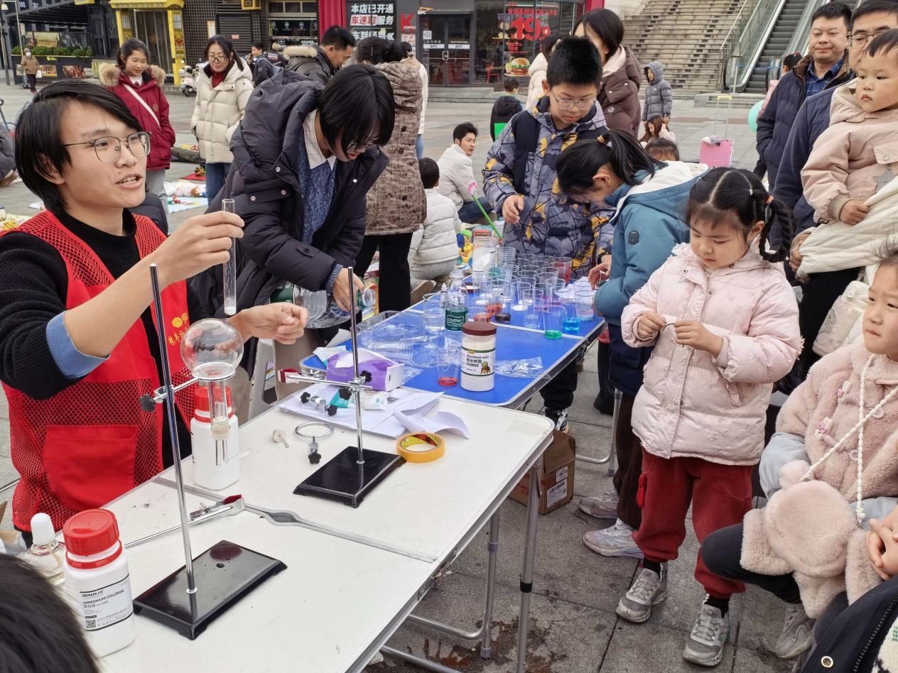 本次活动组织严密、衔接顺畅、现场秩序良好,达到了“以体验促认知、以互动促兴趣、以科普促成长”的预期效果。通过将高校专业资源下沉到社区公共服务场景,把抽象的化学知识转化为儿童可感知、可参与、可理解的科学体验,进一步拉近了科学与群众特别是低龄儿童之间的距离,有效营造了“在家门口学科学、在动手中爱科学”的良好氛围。活动不仅帮助孩子们建立了初步的科学观察意识与安全规范意识,也为家校社协同开展科学启蒙提供了有益实践。