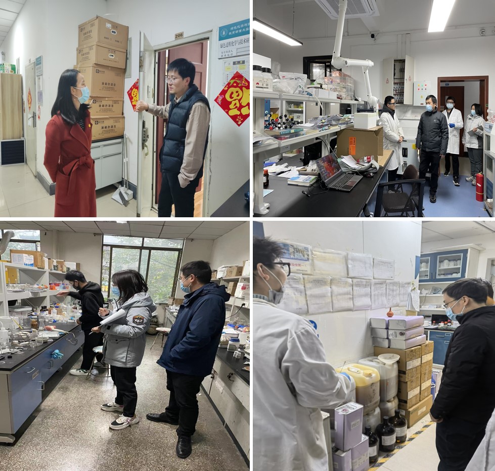 12月1日学院领导带队分成四个小组,对学院各实验室进行了节前安全大检查。谢均书记带队重点检查了化材楼B座和化学馆,肖波副书记带队重点检查了第一理科楼1-3层,郑成斌副院长带队检查了第一理科楼4-6层,马利建副院长带队重点检查放化馆和化材楼A座。本次安全大检查着重排查了消防安全、用电安全、危险化学品储存使用、气瓶管理和公共卫生等问题,并对检查中发现的安全隐患做了详细记录,要求相关课题组立即整改。