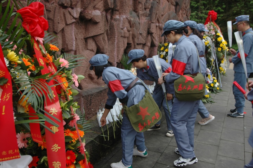 2021年4月22日,化学学院部分党员师生代表赴邛崃红军长征纪念馆开展党史学习教育活动。“红军不怕远征难,万水千山只等闲”,党员同志们换上红军服,学习打绑腿,遵守着装规范和军容军纪。