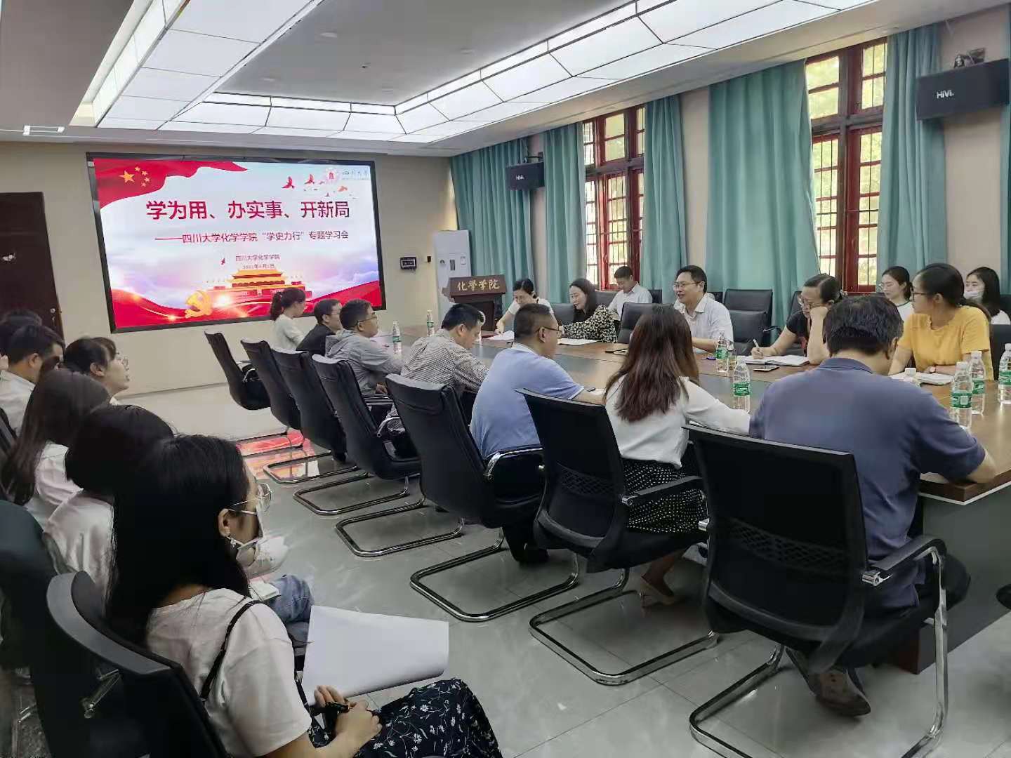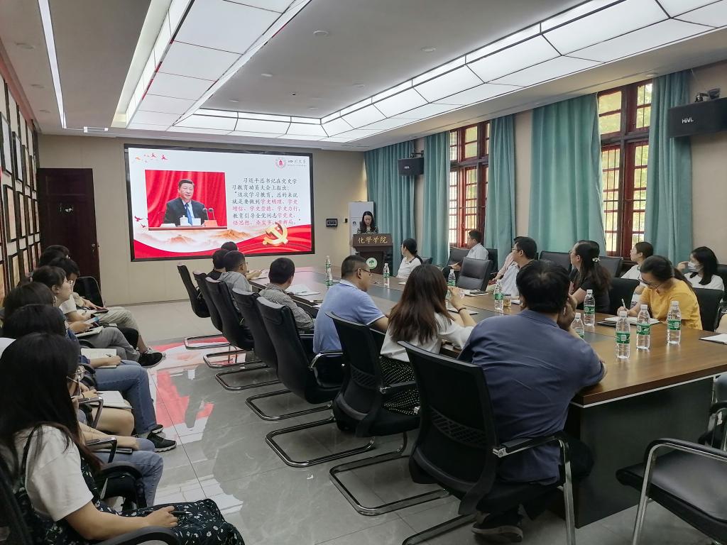 2021年6月1日下午,化学学院党委理论学习中心组在化学学院122会议室开展了党史学习教育第四专题学习。学院班子成员、党委委员、纪委委员、支部书记、教师和学生党员代表参加了学习会,学校党史学习教育第六督导组组长王智猛参加了会议,会议由学院党委书记谢均主持。