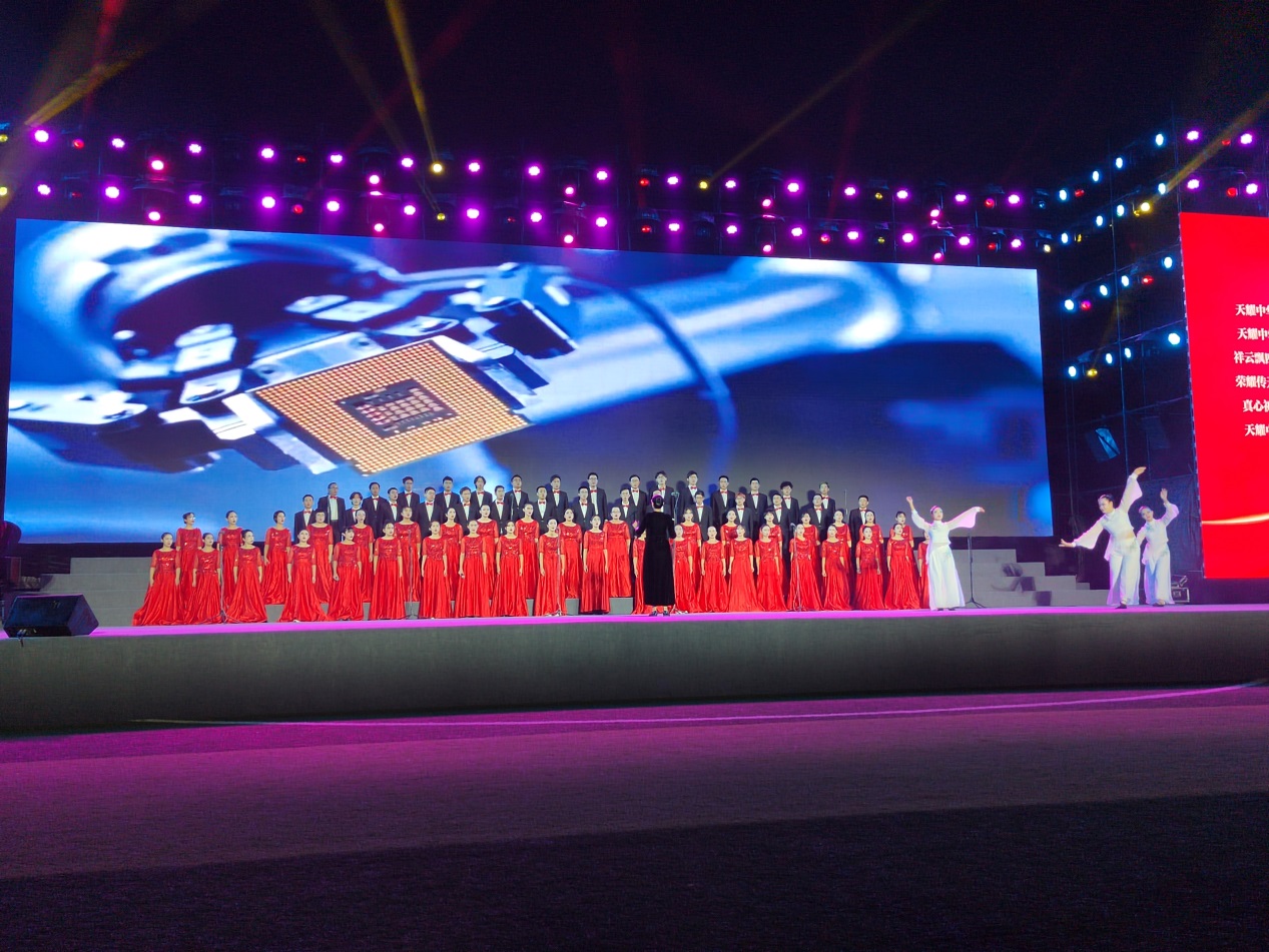 化学学院师生合唱团以饱满的热情演唱了《天耀中华》,把对党和祖国诚挚的感情、对中华民族深深的祝福细腻地展现了出来,表达了坚定不移听党话、感党恩、跟党走的决心和信心,将中华民族不怕艰险、奋勇争先的坚毅表达的淋漓尽致,感人至深。饱含深情的演唱感染并激励着每一个人。